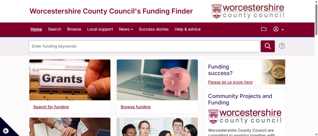 WCC provides a range of resources and information on local and national funding opportunities via its Community Projects & Funding webpage. This includes a free, searchable database of opportunities aimed at individuals and organisations in the Worcestershire area.