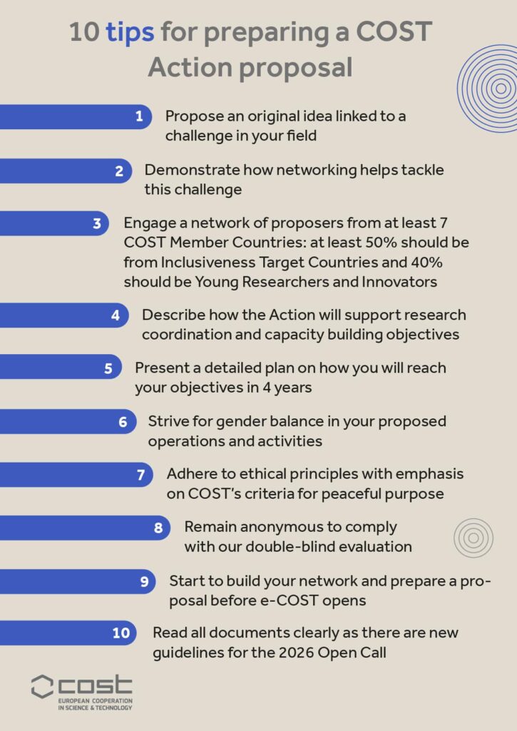Proposers’ guidelines are included as a PDF below, but proposers are also encouraged to contact their COST National Coordinator (CNC) for additional information and guidance (see www.cost.eu/cnc).